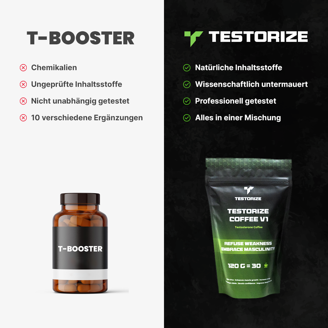 Steigern Sie Ihr Testosteron mit unserem Testorize Coffee. Mehrere wissenschaftliche Studien, die sich über Jahrzehnte erstrecken, zeigen die erwiesene Wirkung von Inhaltsstoffen wie Bockshornklee, Shilajit, Maca-Wurzel und Ginseng Koreng bei der Steigerung des Testosteronspiegels. Steigern Sie Ihren Testosteronspiegel auf natürliche Weise.
