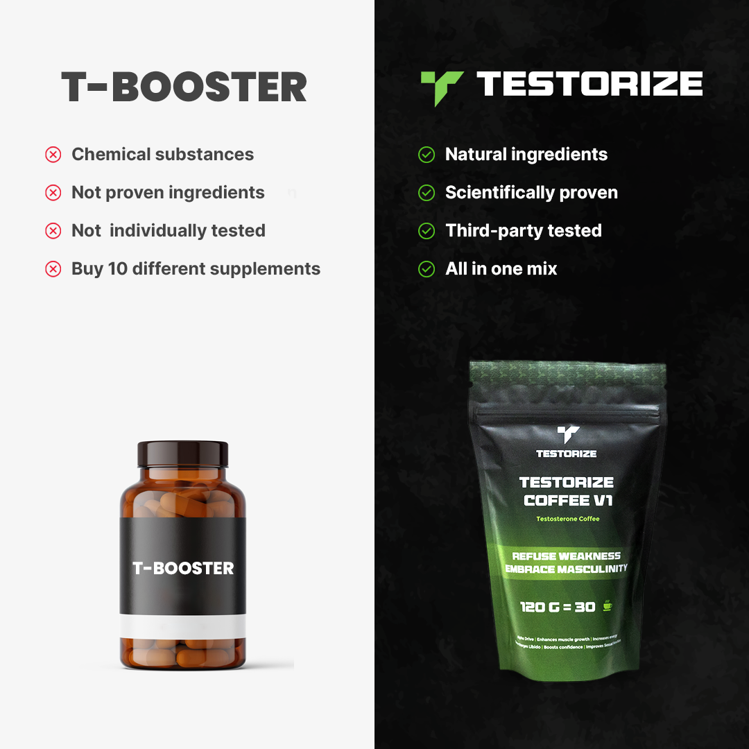Testorize Coffee is the ideal replacement for your everyday morning drink, offering a one-of-a-kind blend that supports testosterone levels, boosts libido, and improves your overall vitality. Crafted with 100% Organic ingredients, it provides the perfect coffee for men looking to improve their health and well-being the natural way.